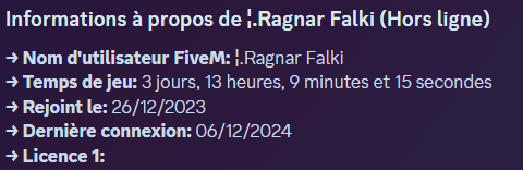 This first command is the main tool that you will be able to use on Discord. It will allow you to access a player's basic information, their profile but also to apply sanctions to them in-game.